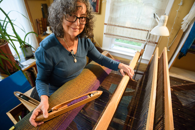 Abby Bard at her loom. Photo by Jerry Dodrill.