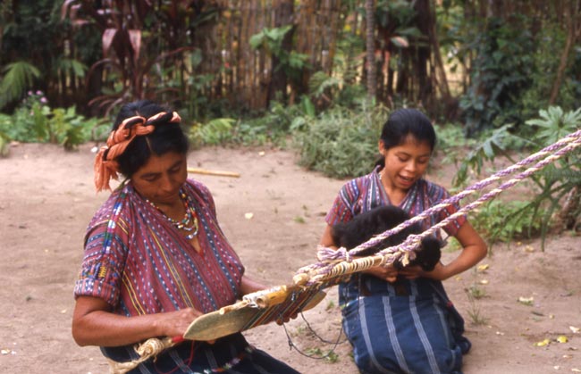In the winter of 1973-1974 I spent several months in Central America, and learned to weave on a backstop loom in Panajachel, Guatemala from Lucia DeLeon Queche, a Guatemalan woman of Mayan descent.